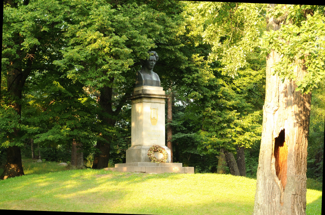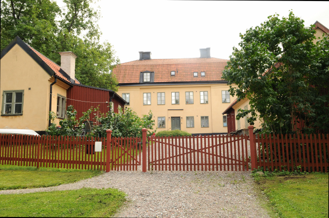 Låt inte lura er: vad som ser ut att vara gårdens huvudbyggnad är bara en fondkuliss! Den högra flygeln är det riktiga boningshuset.