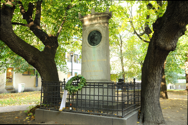 Bellman är begravd på Klara kyrkogård. Hans stora minnesvård nära utgången mot Klarabergsgatan, prydd av vännen Tobias Sergels medaljong över skalden, restes av Svenska Akademien år 1851. Att Bellman är gravsatt på denna kyrkogård är bekräftat. Däremot känner man numera efter omgrävningar på 1800-talet inte till den exakta platsen.